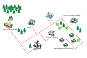 Le bois de la région, réduit en copeaux, est brûlé dans la centrale. L’eau chaude produite parvient aux immeubles par le biais de conduites à distance. A cet effet, on utilise deux tuyaux: l’un amène l’eau chaude et l’autre évacue l’eau refroidie pour la reconduire vers la centrale.