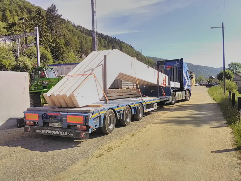 03.06.2019 – Arrivée des premiers éléments de la charpente